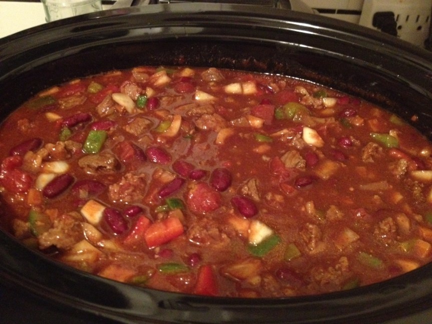 - Combine peas, diced bell pepper, onion, carrots, garlic, jalapeño halves, stock and seasonings in a slow cooker. Cook for at least 4 hours on low.