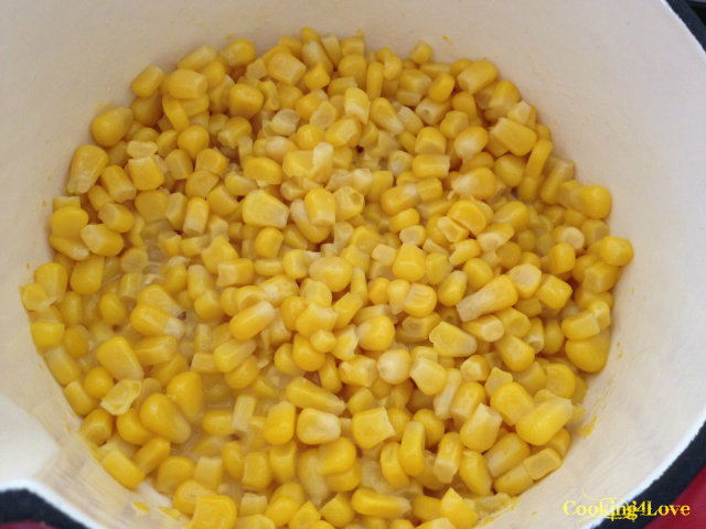 I made this yummy dish last year, and thought for sure I has posted it right afterwards, but my bad for not doing so. This recipe contains bacon, so if you’d like to make it vegetarian, simply omit that and substitute vegetable broth for the chicken stock. This can be served as a stew or you can use a slotted spoon to drain it. Some people like to have the “sauce” on the side to dip their cornbread in.