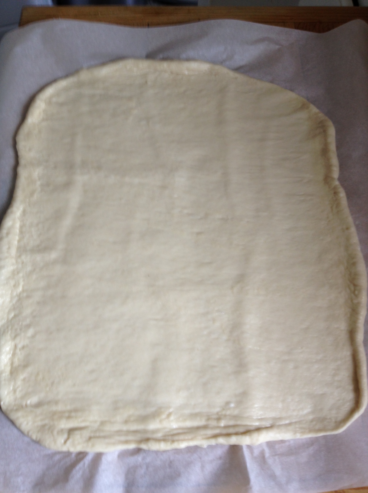 3. Place loaf on parchment paper (not wax), and spray rolling-pin with cooking spray.